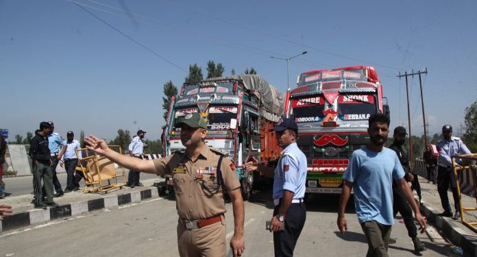 Fruit-laden trucks from Kashmir were stranded for days due to the closure of the crucial highway following heavy rains and flash floods.